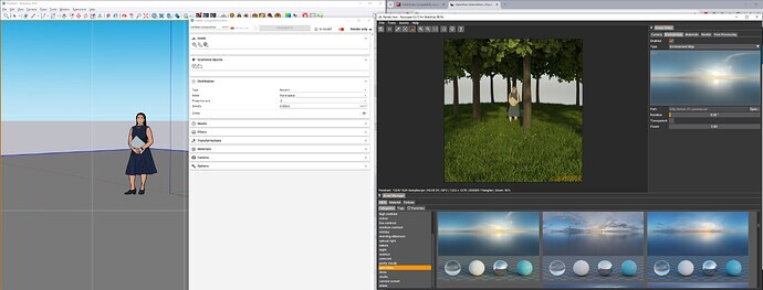 Here is something I created some time ago and I have forgotten how I did things. I have not used Skatter for a good while. I would like to create something like it again but am having problems remembering how to do things. I did look at some documentation, but I am consistently messing up. I can create the hills and etc. in SketchUp but when I try to add the vegetation (in particular I want to create just a straight line of bushes) and then add it to my terraine, I am making a pure mess.